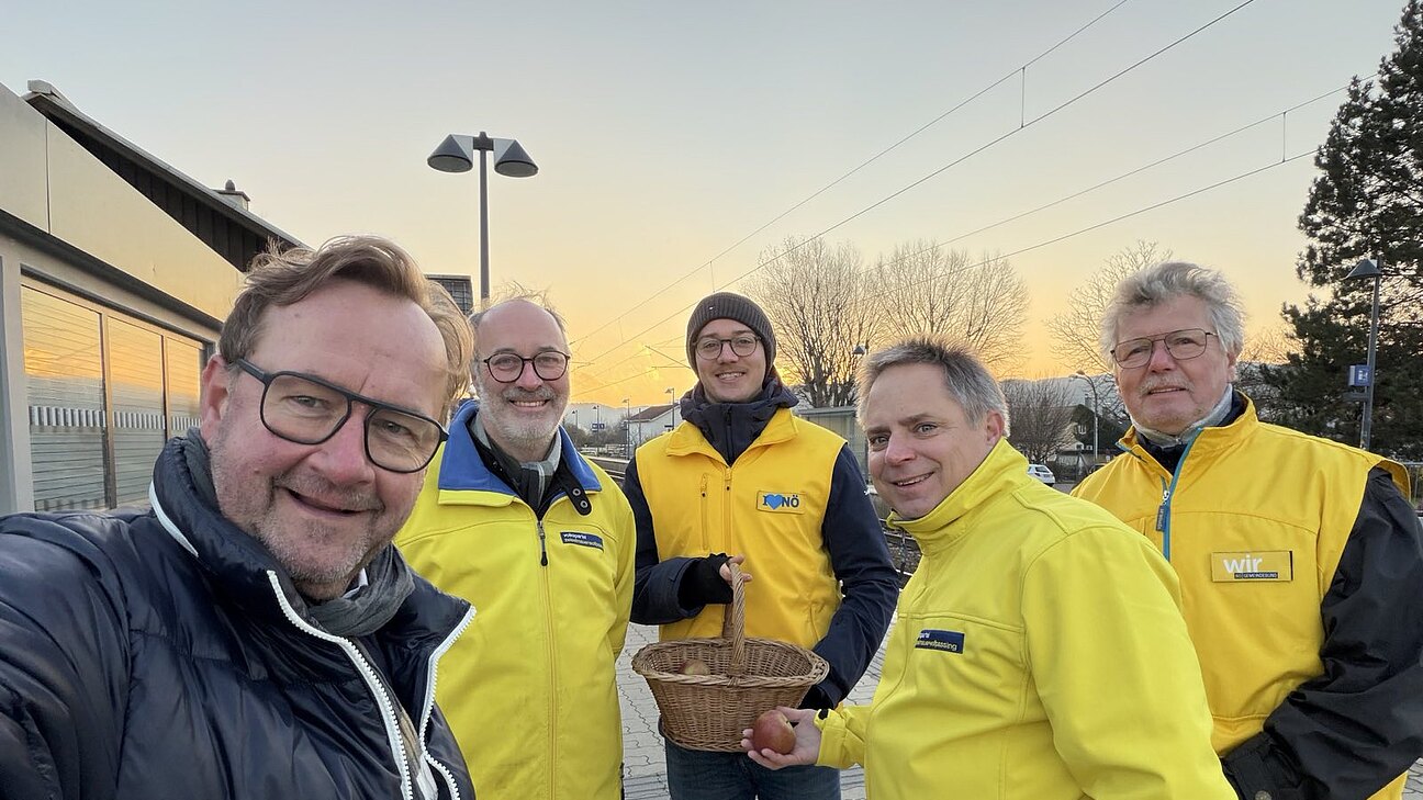 Auch dieses Jahr haben die ÖVP Gemeinderäte am frühen Morgen Äpfel am Bahnhof verteilt.